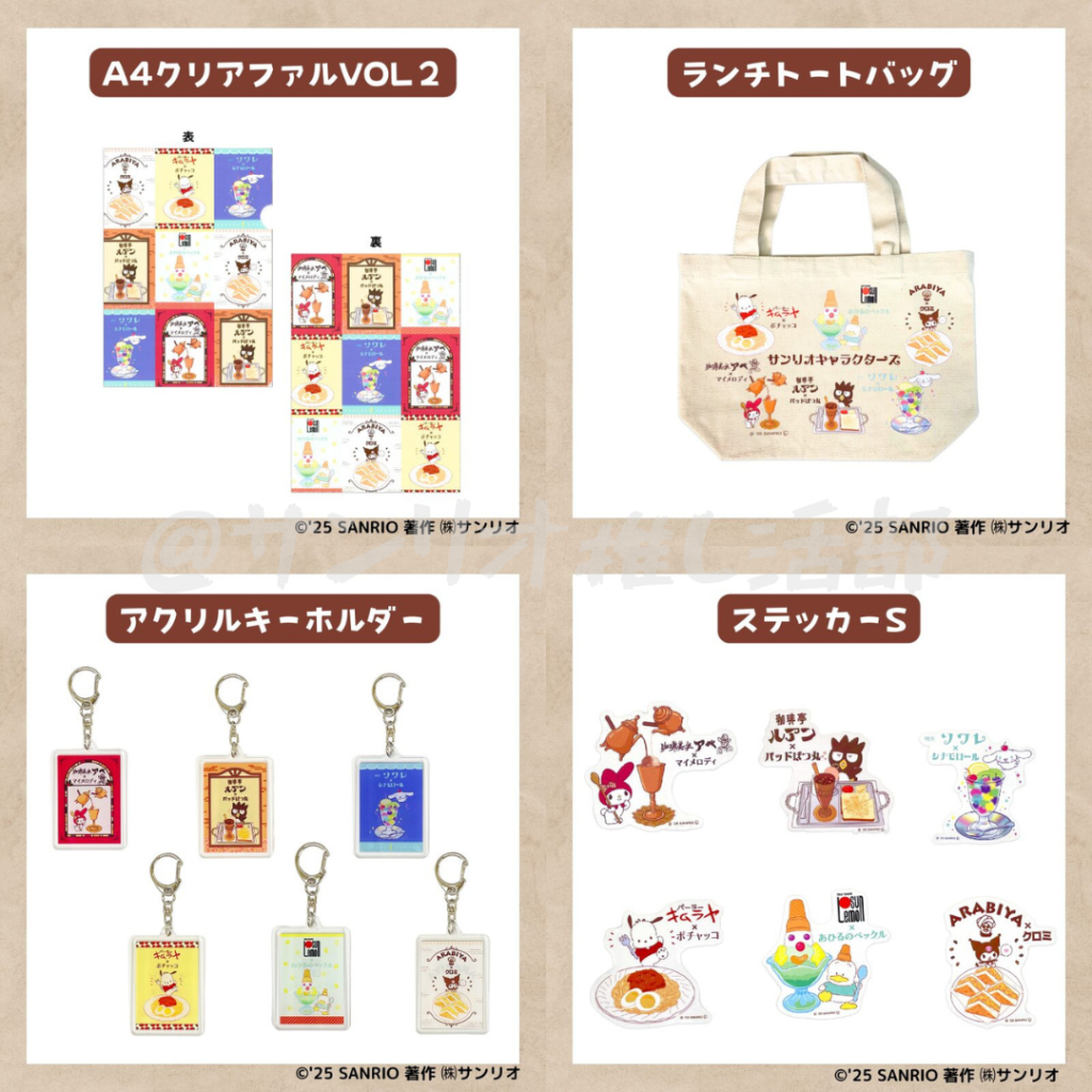 実在する喫茶店6店の名物メニューとサンリオキャラが一緒にデザインされてるよ😭💕
