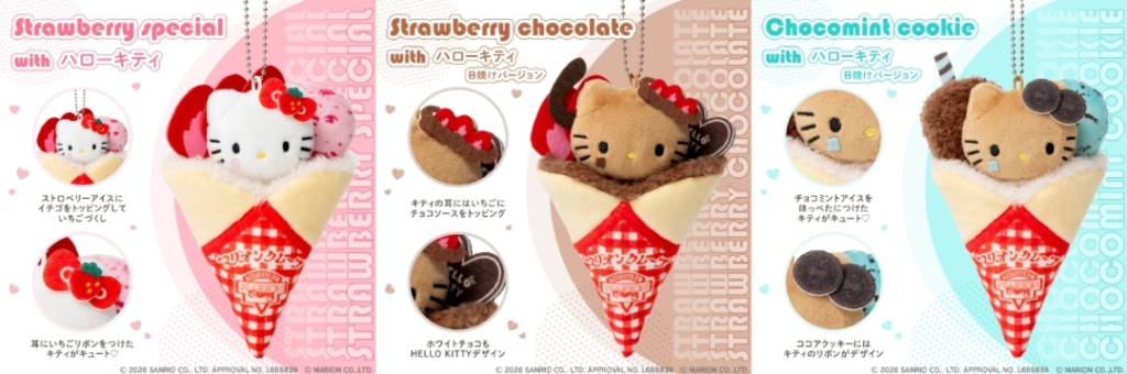 『マリオンクレープ × HELLO KITTY ぬいぐるみチャームBOOK』3種が4月発売開始🍓🍫