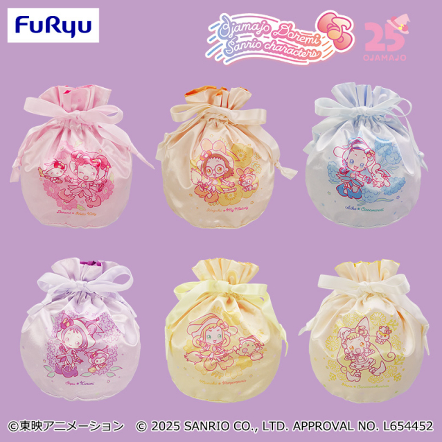 おジャ魔女どれみ×サンリオキャラクターズ サテン巾着ポーチ